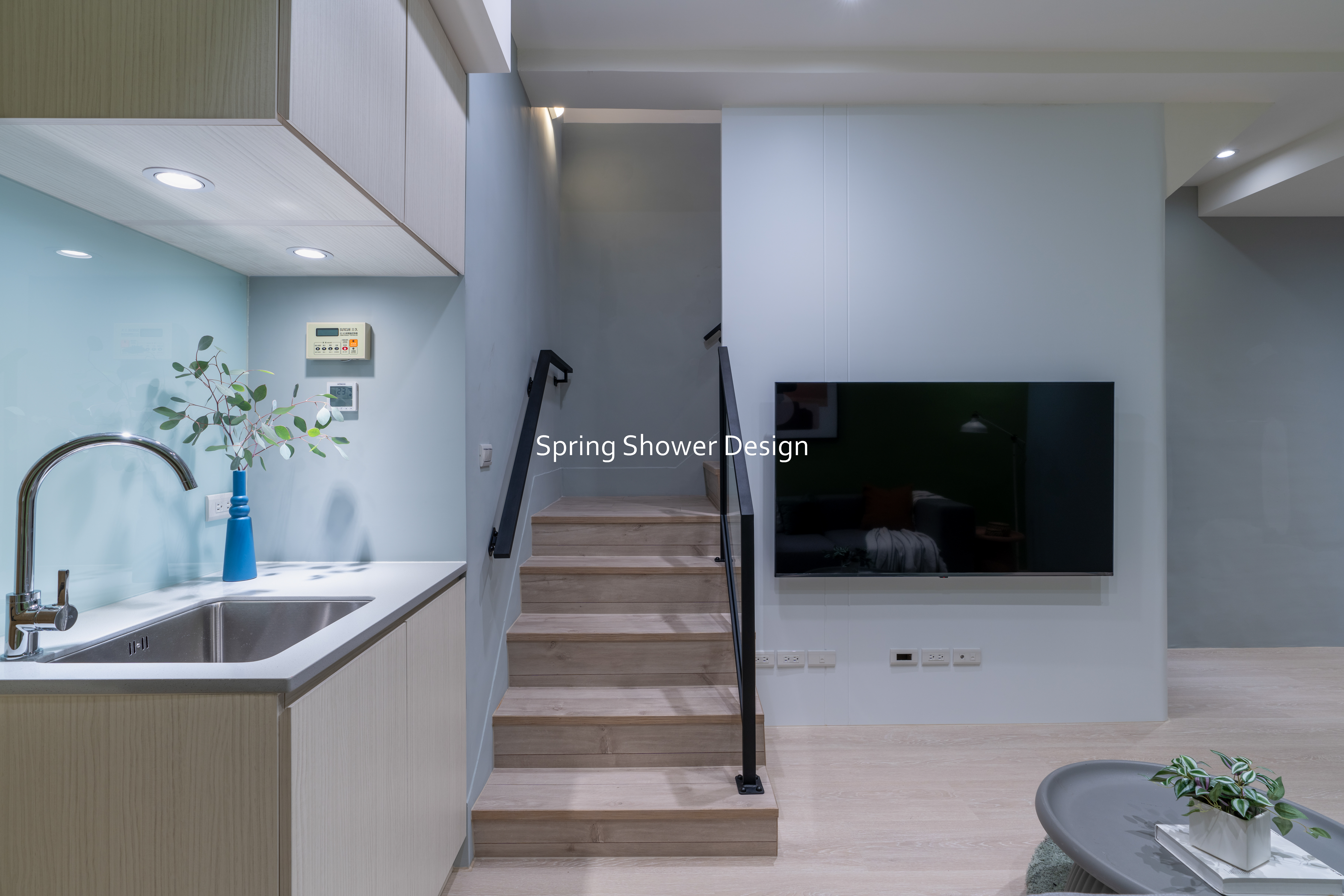 我們也特別在二樓加設水槽空間,可以做為點心或茶水Bar,如果屋主想要吃點東西、喝個水,就不需要特別走下樓了。